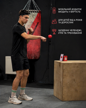 Працює разом із мобільним додатком: рахує удари, фіксує результати та допомагає відстежувати прогрес. Підходить для тренувань вдома і в залі — як для новачків, так і для досвідчених.